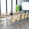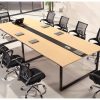 Với kiểu dáng hình chữ nhật mặt bàn được thiết kế hoàn toàn từ chất liệu gỗ cao cấp và phủ 1 lớp Melamine chống bám dính, chống mối mọt, chống thấm và đặc biệt chống phai màu cùng với những đường vân gỗ giả làm tăng tính sang trọng trong phòng họp nhưng không hề giảm đi tính thời thượng, hiện đại.