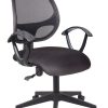 Chất liệu: Lưng bọc lưới, ngồi bọc nệm, tay nhựa, mâm ngã 2 cần, chân xoay nhựa nhỏ, có bánh xe.